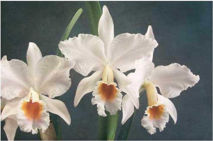 Although it blooms reliably for us at Christmas, Cattleya percivaliana can bloom anytime from October into January. It blooms at the early end of that range in its habitat in the Venezuelan Andes. Shown here is the albescent color form, 'Sonia de Urbano'.