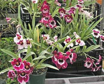 A bench of hybrid miltonias flowering at the Smithsonian Institute. Photo © 2004 Greg Allikas